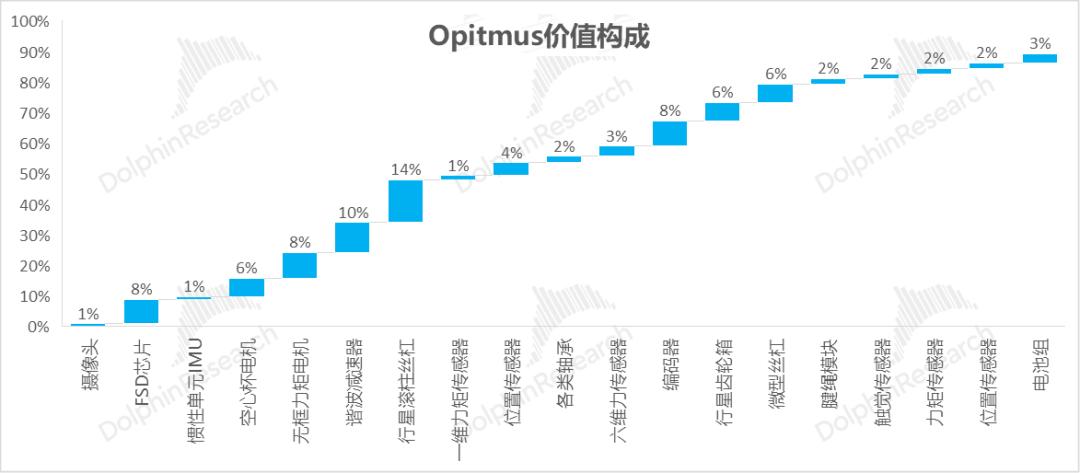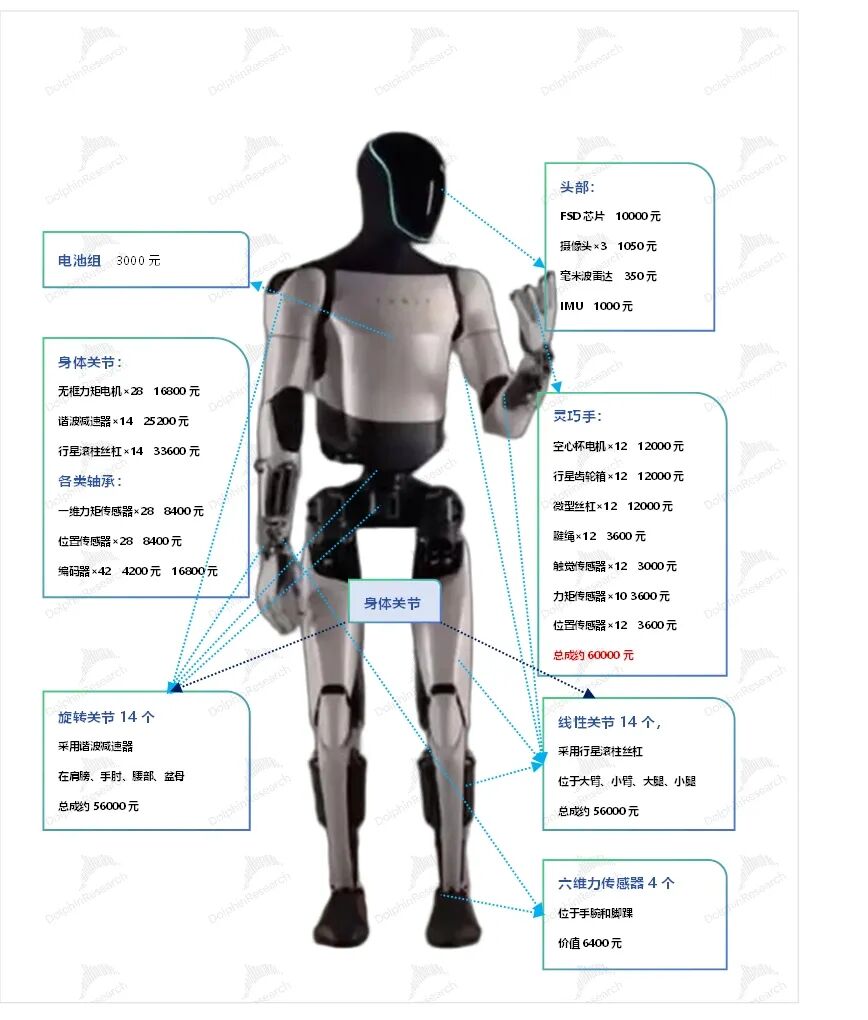 如果最终特斯拉能攻克下来,机器人的空间很显然是比较大的。因此海豚君也进入本篇最为核心的上游硬件的价值链拆解。这里就以Optimus人形机器人为例。