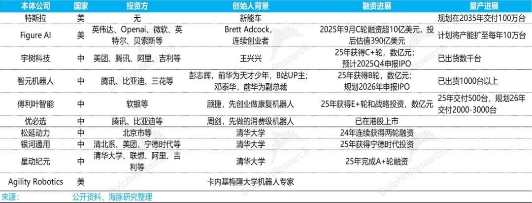 主机厂厂商,可以直观理解为制造和销售人形机器人的公司。目前来看,主要人形机器人主机厂公司基本集中在中美两国。