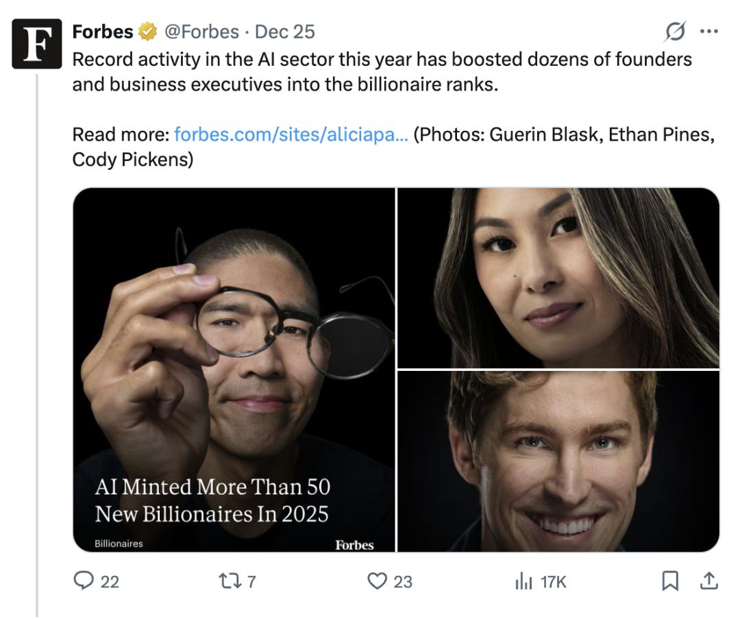 [2]https://www.forbes.com/sites/aliciapark/2025/12/25/ai-minted-more-than-50-new-billionaires-in-2025/