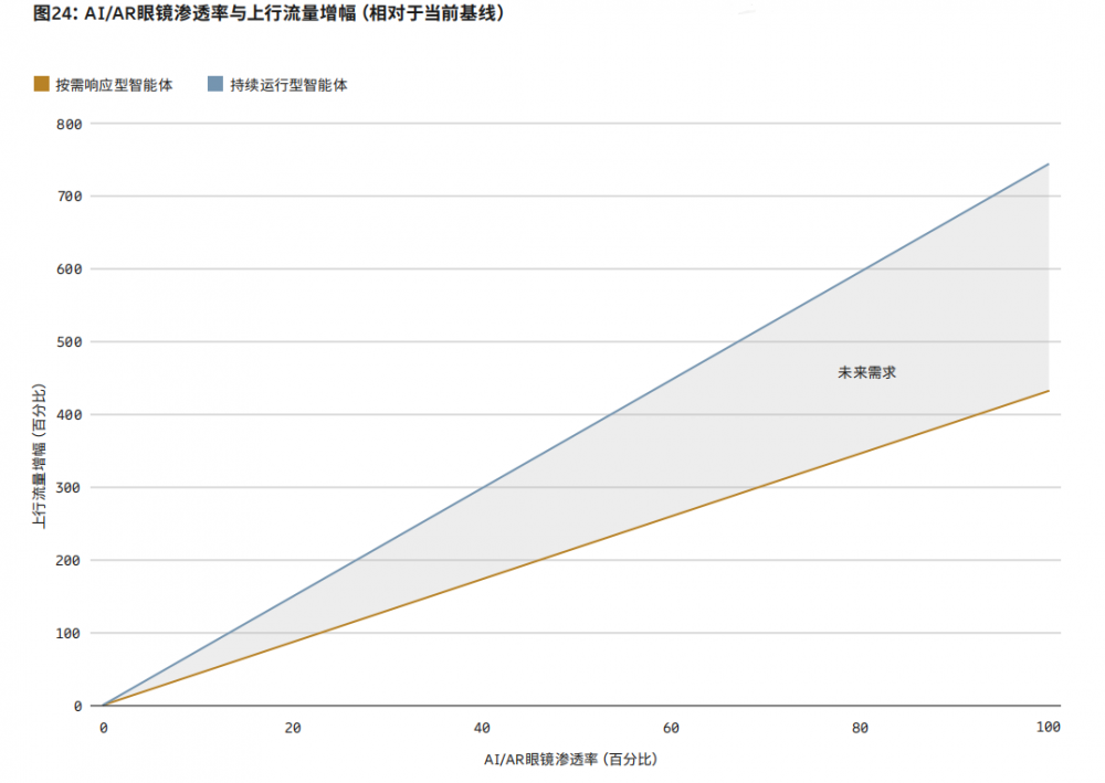 不过,一些新的变化正在出现:AI智能体的发展开始支持多模态输入,而不再是简单的文字交互,比如今年大量发布的AI眼镜,这类应用的流量消耗正越来越多,但其是否能成长为像视频一样超大体量的流量载体尚不明确。
