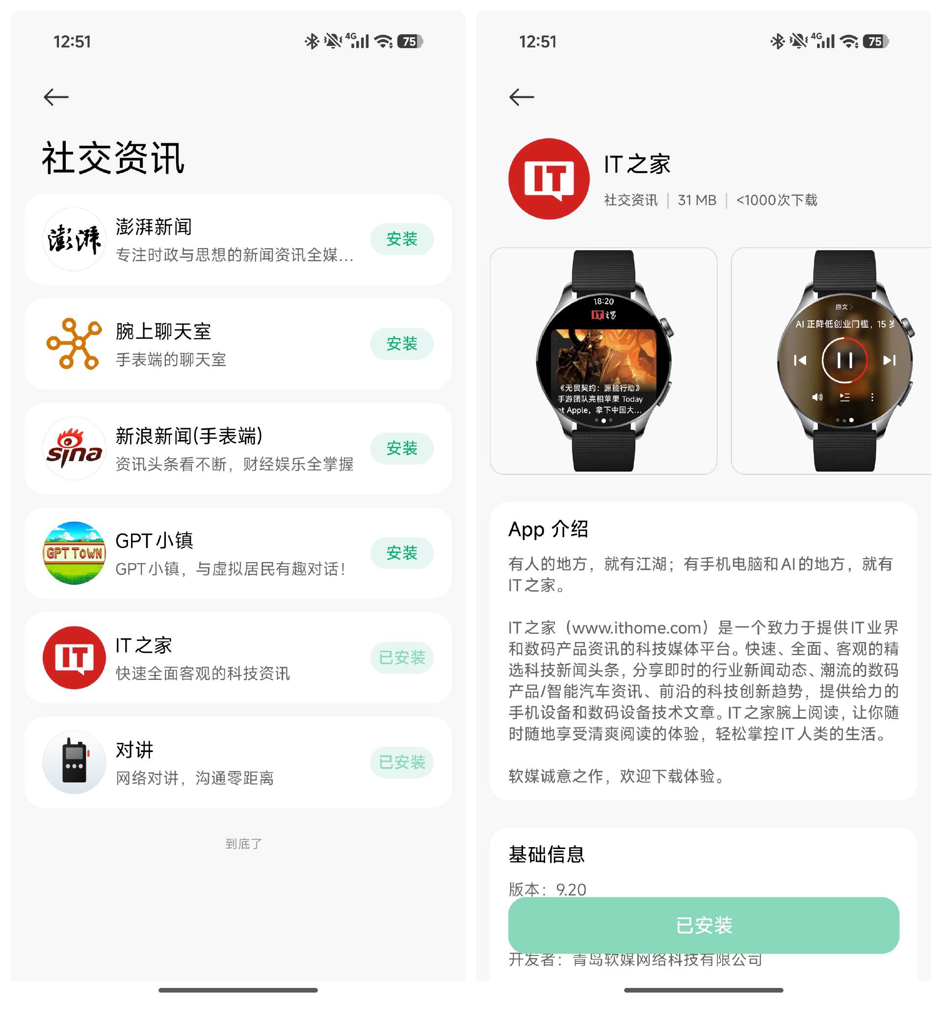 互联体验方面,IT之家还打通了双端生态:手机端评论时支持显示手机、手表双尾巴;同时支持跨设备接力,表端文章,也能一键无缝流转至手机继续阅读,体验相当丝滑。