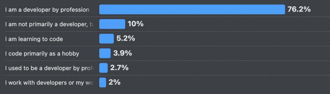 数据显示,76.2%的受访者为专业开发者。