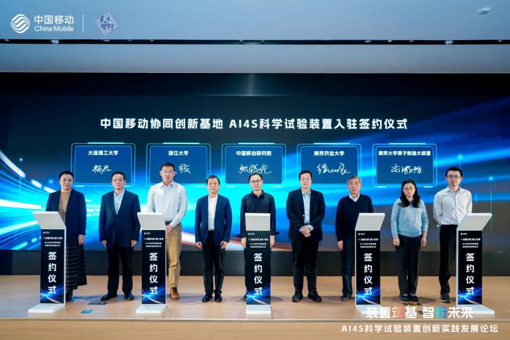 同时,会上举行了中国移动AI4S科学试验装置入驻签约仪式,大连理工大学、浙江大学、南京农业大学、南京大学等四家顶尖机构作为新一批合作伙伴正式入驻,进一步丰富了装置的应用生态。