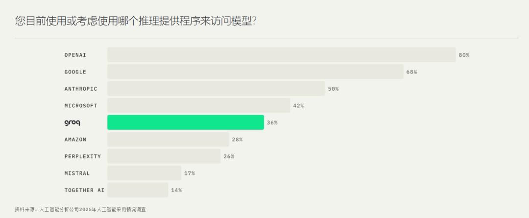 靠着奇特但有效的技术路线,Groq 迅速圈了一波粉。在他们摆在首页中央的一张统计图上,模型推理业务已经压了亚马逊一头,仅次于微软了。
