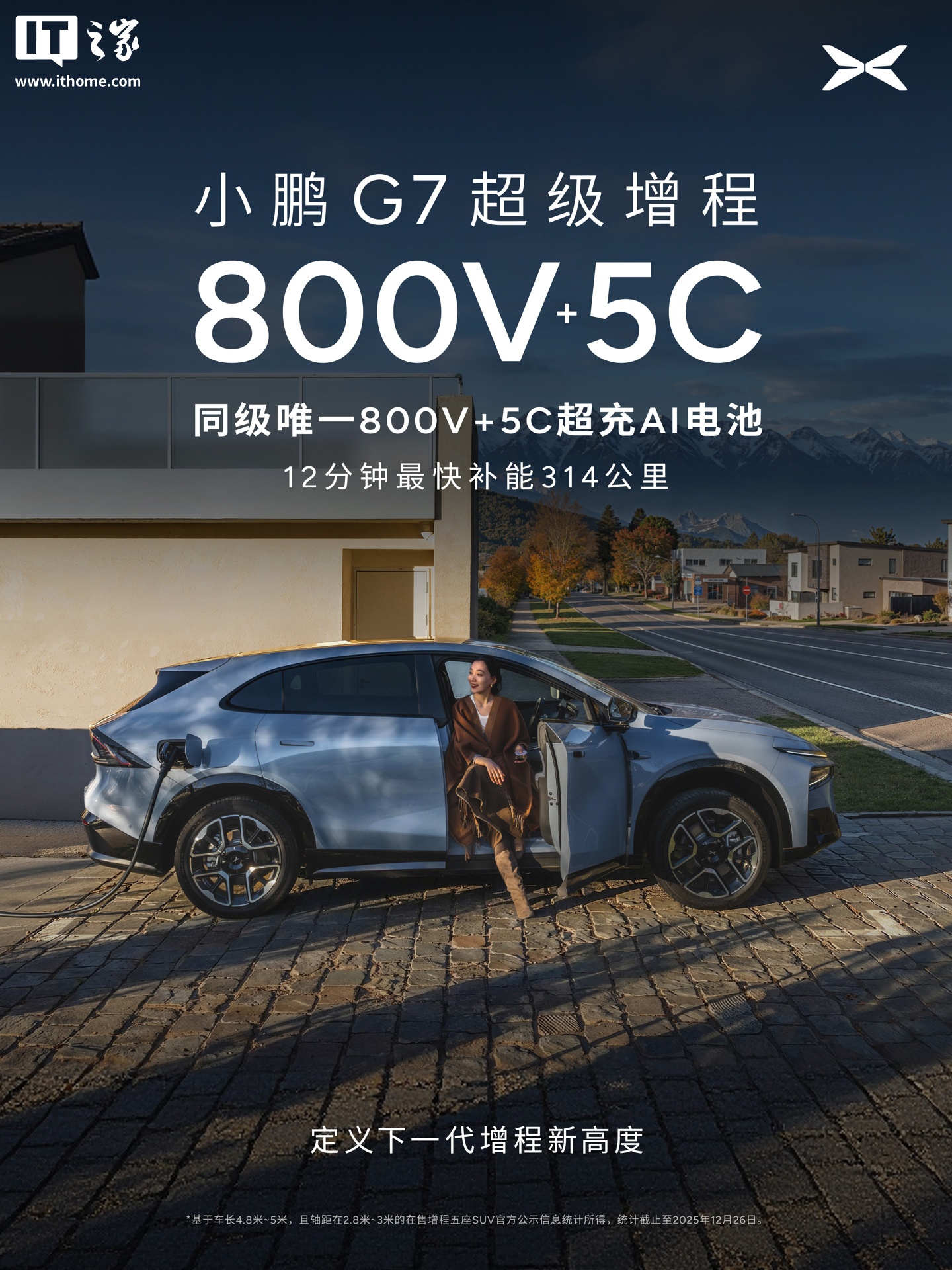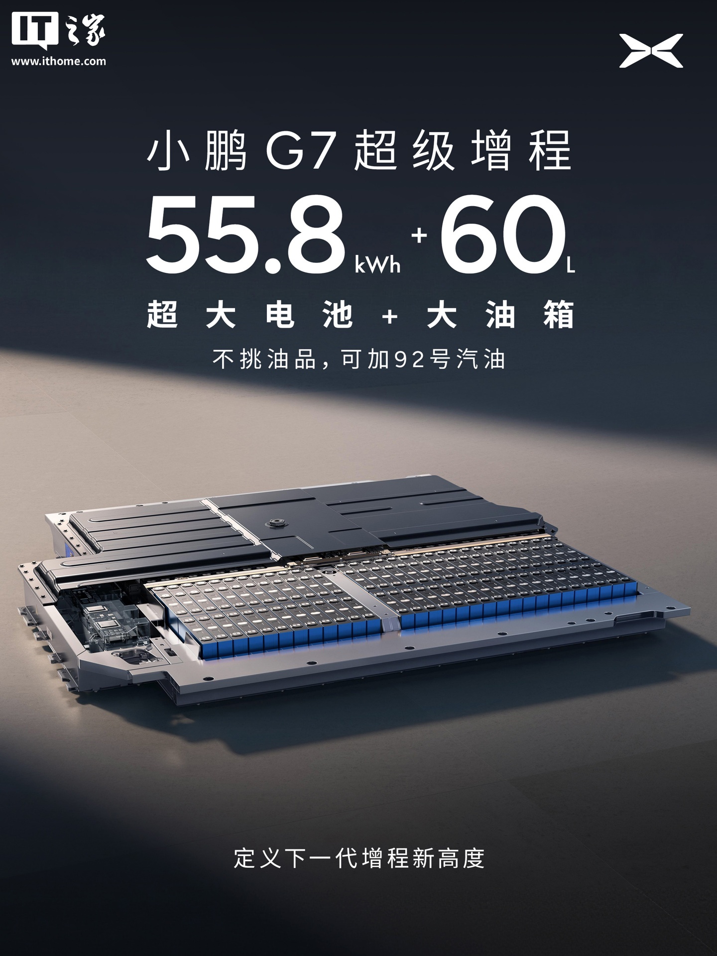 IT之家 12 月 30 日消息,小鹏汽车董事长何小鹏今日宣布,小鹏 G7 超级增程 SUV 正式登场。这是小鹏鲲鹏超级增程家族推出的首款 SUV 车型,把综合续航做到了全球最长的 1704 公里(55.8kWh 电池 + 60L 油箱,可加 92 号汽油)。