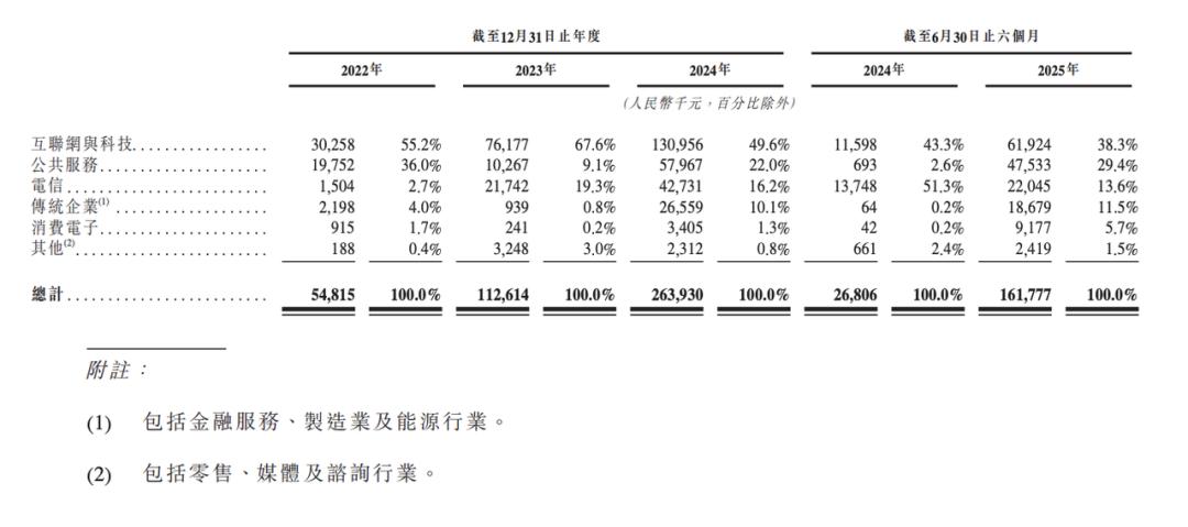 其高度依赖大客户,包括互联网与科技企业、公共服务部门等。目前机构客户数目由2022年的48家增至截至2025年6月30日止六个月的3156家。其中,最大客户收入超过总收入10%,前五大客户收入占营收始终超过40%。