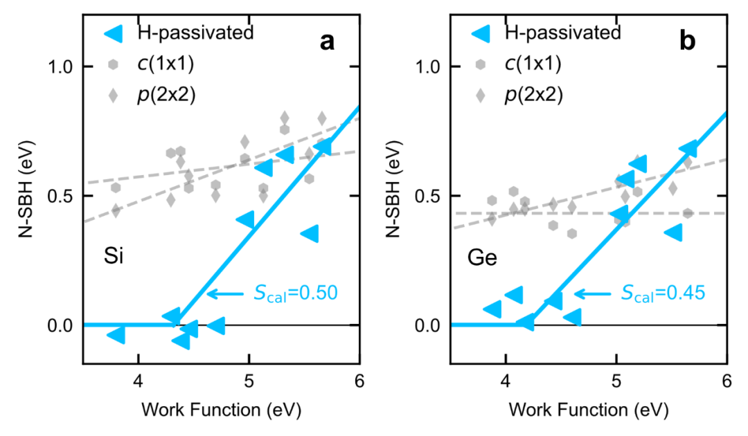 该研究不仅揭示了硅和锗在与金属接触行为上的微观差异,更提出了一条清晰的界面工程设计路径:通过调控界面原子成键构型,减少悬挂键诱导的能隙态,从而缓解费米能级钉扎。