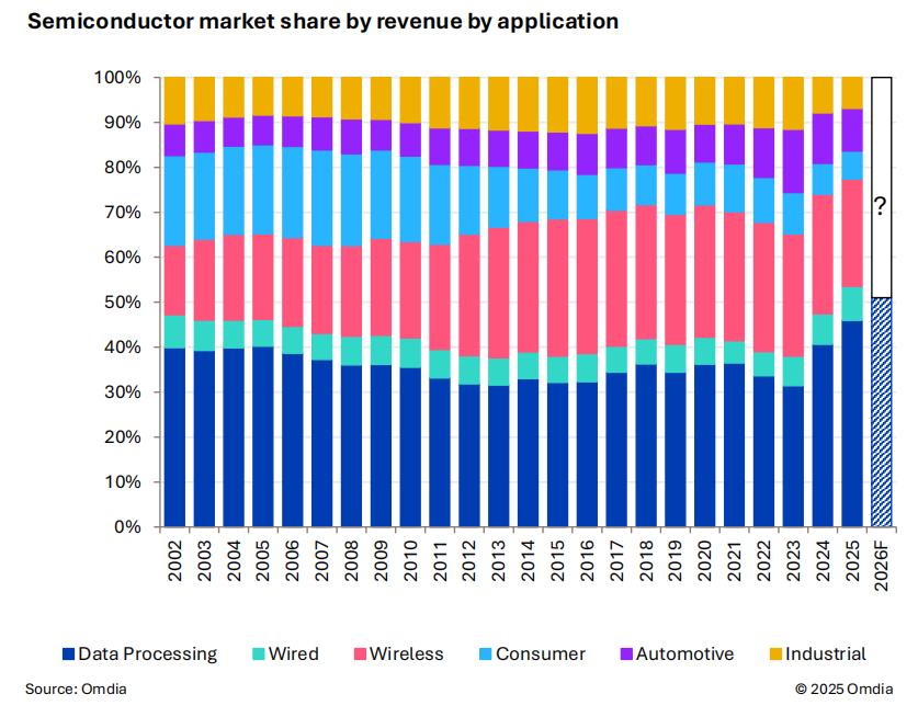 消费电子产品的收入增长,由政府补贴推动,正在放缓。在2025年下半年和整个2026年,市场扩张将由持续的人工智能投资和边缘人工智能的崛起推动,这将推动特定应用领域对芯片的需求增加。
