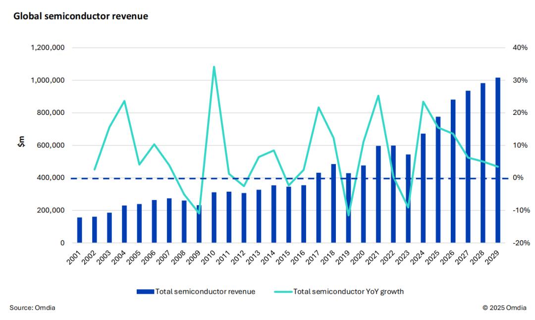 Omdia表示,2025年,中国半导体市场预计将实现显著增长,市场规模达3930亿美元(同比增长16%以上),主要得益于人工智能数据中心的投资推动。
