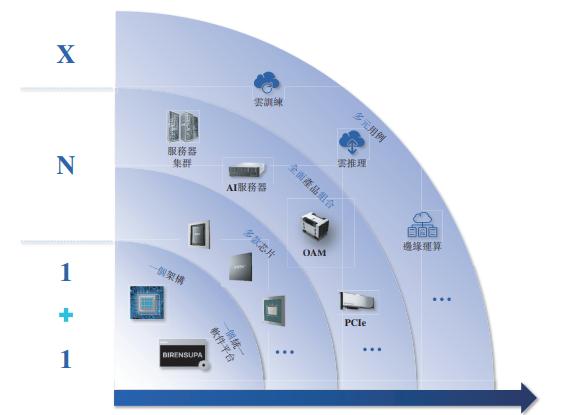 时至今日,壁仞科技构建了“1+1+N+X”平台战略,可概括为1个GPU架构+1个统一软件平台,衍生出多款芯片及全面产品组合,以赋能广泛的应用场景。
