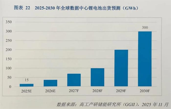 《2025年中国AIDC储能行业发展蓝皮书》显示,全球数据中心储能市场正迎来爆发式增长,预计到2030年数据中心储能锂电出货量将突破300GWh,相当于2025年的20倍。