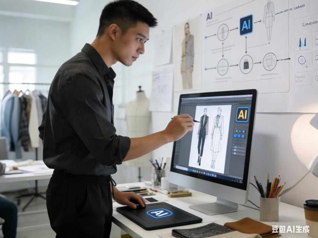 我先筛选方向和风格,再通过指令让模型生成,最后由我来做审美判断。真正的工作重点,是把传统服装设计的思路转化为算法可执行的逻辑。如果反馈款式“不对”“不好看”,就意味着模型需要重新调整。这是一个持续投入、持续训练的过程,没有稳定算力和工程能力,很难长期跑下去。