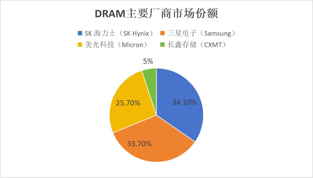 DRAM主要厂商的市场份额