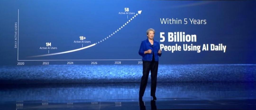 苏姿丰抛出了一个让全场愣住的判断:「五年内,全球将有50亿人每天都在使用AI 。」
