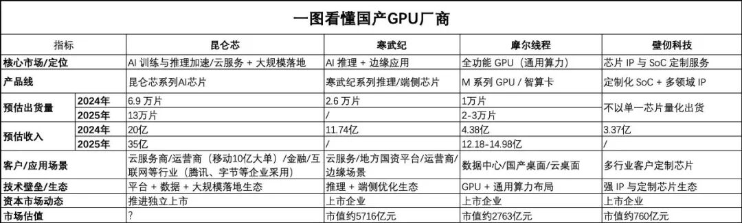 从短期来看,昆仑芯的领跑优势非常明显。依托百度的场景和渠道资源,它已经完成了从 “内部支撑”到“外部扩张”的转型,2025年中标中国移动十亿级订单,客户覆盖金融、能源、制造等关键行业,商业化规模和速度都处于行业前列。这种高速增长的确定性,是资本市场最看重的核心逻辑。