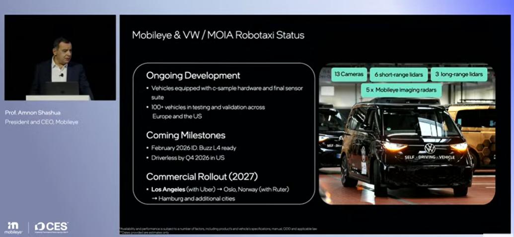 在热闹非凡的消费电子“春晚”——CES 2026上,自动驾驶老牌巨头Mobileye趁机宣布了一则好消息: