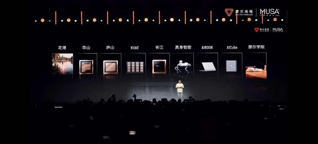例如,摩尔线程只用了四年时间就完成了数代全功能GPU迭代,不久前的MUSA开发者大会上,它更是发布了计算效能提高10倍的GPU架构“花港”,与支撑万亿参数模型训练的工程能力的万卡智算集群“夸娥”。