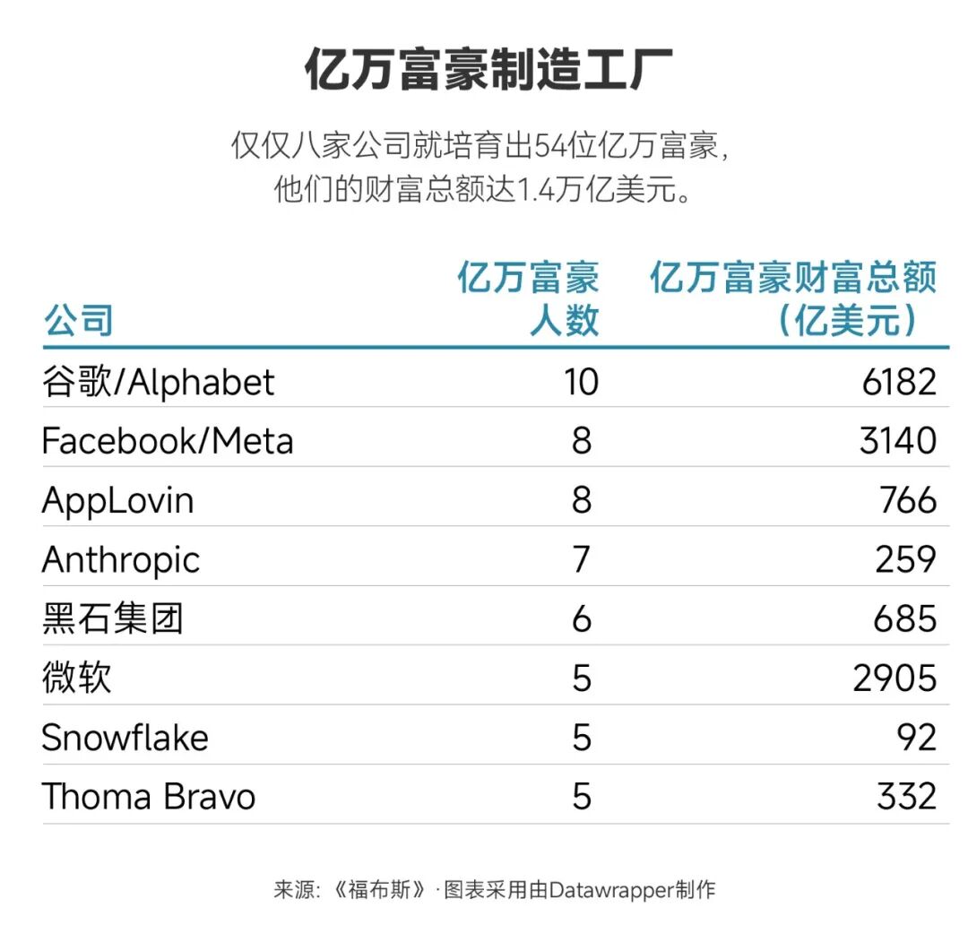 此外,Meta、谷歌、微软(Microsoft)这些家喻户晓的企业,同样是造就亿万富豪的关键力量。