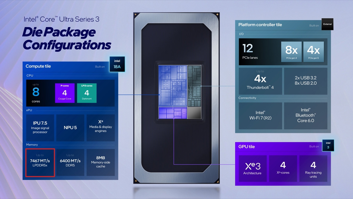 ▲ 英特尔技术之旅 2025IT之家注意到,英特尔在部分 CES 2026 宣传资料中仍然写有 LPDDR5x-6800 相关内容,此外部分处理器的核心数量也有问题,因此小伙伴在查询相关信息时应优先以官网为准。