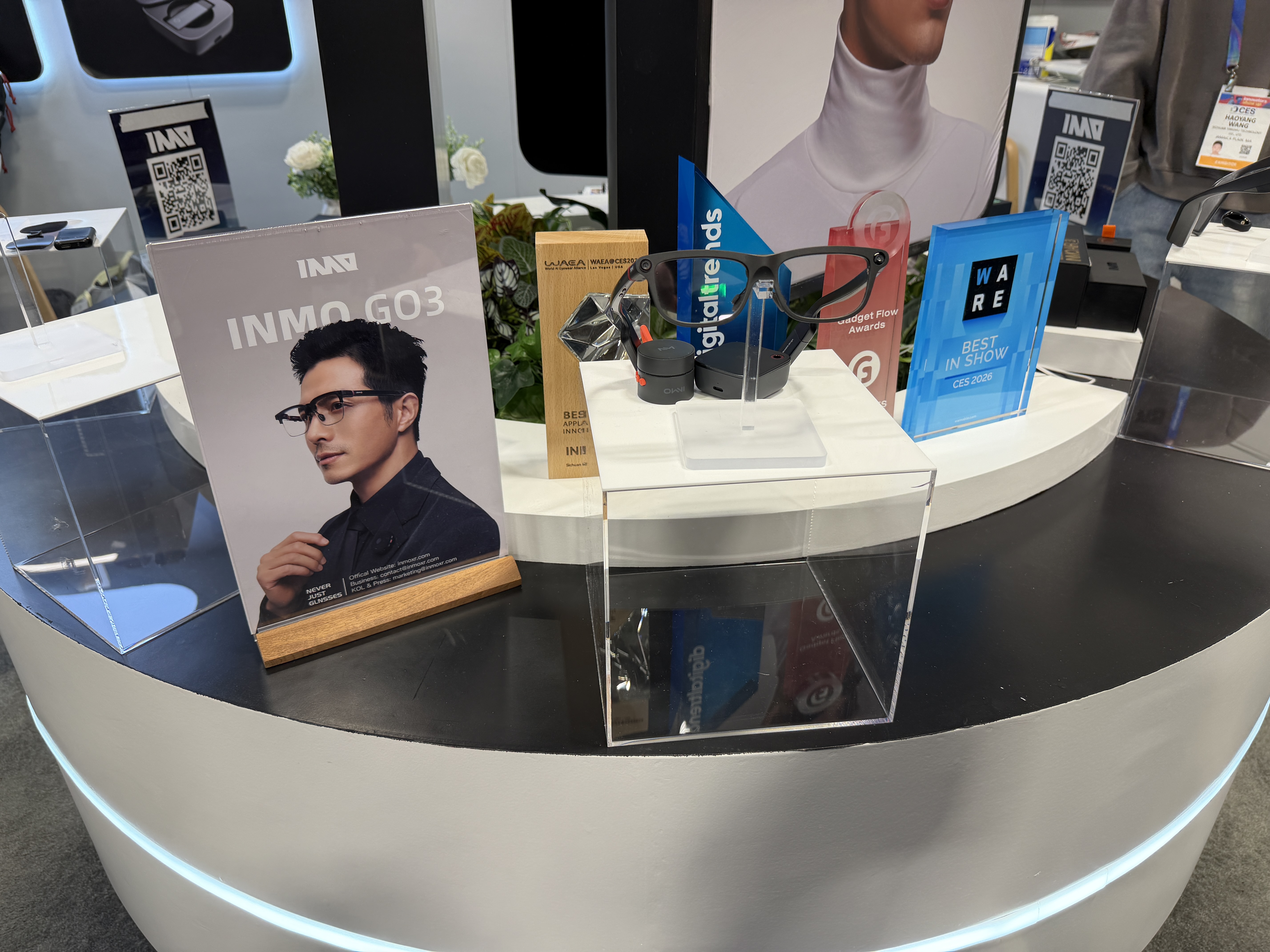 在手机、PC、汽车之外,各种智能可穿戴设备被推到了更靠前的位置。AI+AR眼镜、同时也是可显示AI眼镜的标杆Rokid,这次的展台就跟海信、TCL们挤在一起,而且从规格看已到同一个LEVEL,这颇有一种AI眼镜能跟智能家电们“同桌吃饭”的既视感。