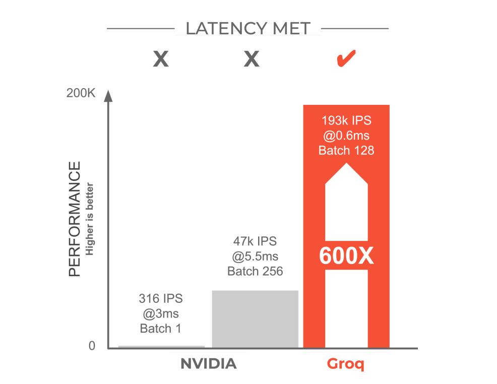 对工业控制、自动驾驶、金融风控、核聚变、能源调度等这些场景来说,“确定性”比“平均性能”更重要。这也是为什么 Groq 在 Argonne 实验室、金融行业 benchmark 中特别强调“deterministic ML”。在阿贡国家实验室(Argonne National Laboratory)的托卡马克核聚变反应堆预测任务中,Groq 的确定性架构在 0.6ms内实现了 19.3 万次推理(IPS),比Nvidia A100结果高出 600多倍。这是 GPU 体系结构先天不擅长的维度。