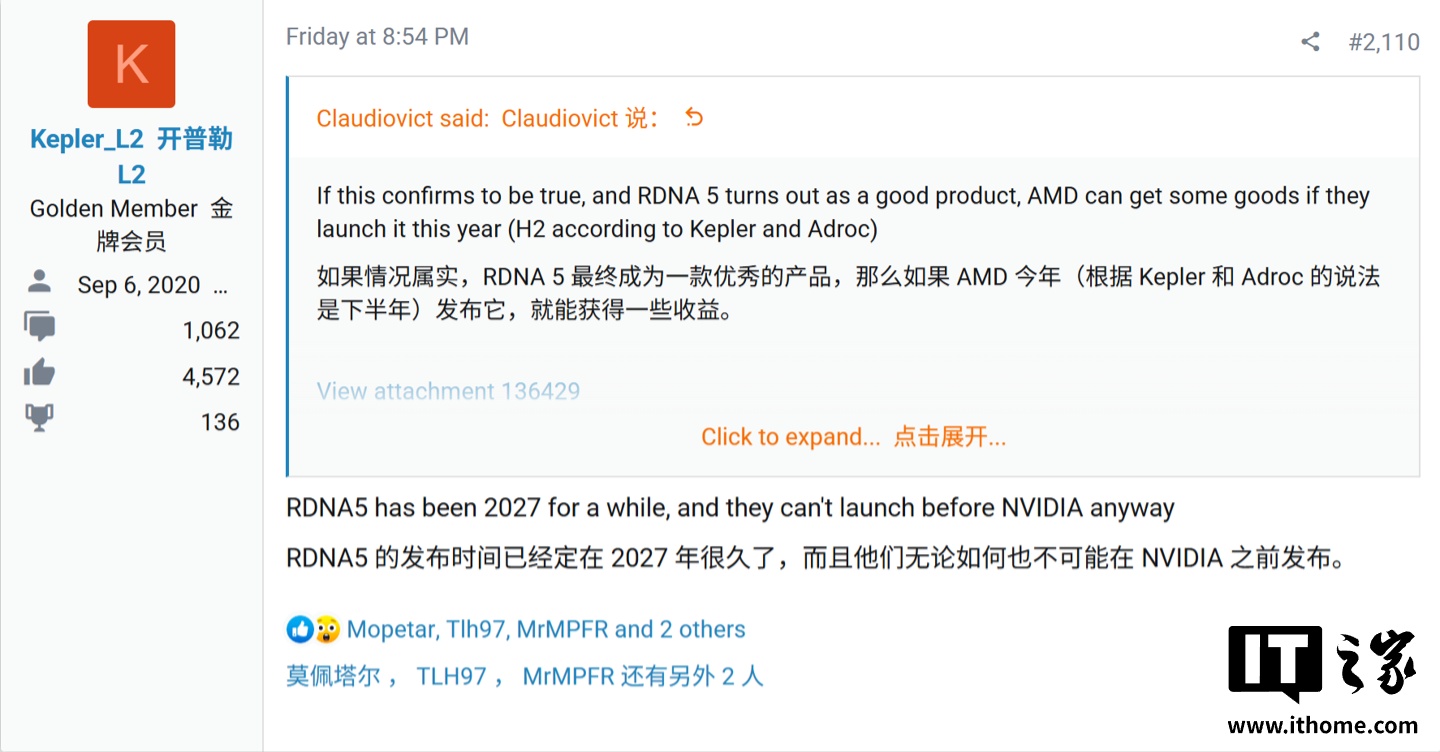 IT之家 1 月 13 日消息,消息源 @Kepler_L2 爆料称 AMD 下一代 RDNA 5 架构显卡将推迟至 2027 年下半年发布,且上市时间将晚于英伟达 RTX 60 系列。
