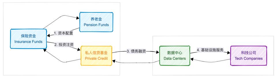 这些资金主要来源于私人信贷市场,背后是养老金、保险公司和年金基金。它们寻求安全、长期、稳定回报,而AI数据中心恰好提供了“长期合同、可预测现金流、投资级评级”的条件。
