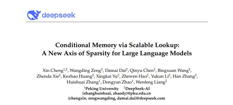 就在昨晚,DeepSeek 联合北京大学 发布了一篇名为《Conditional Memory via Scalable Lookup》的新论文, 梁文锋也再次署名。