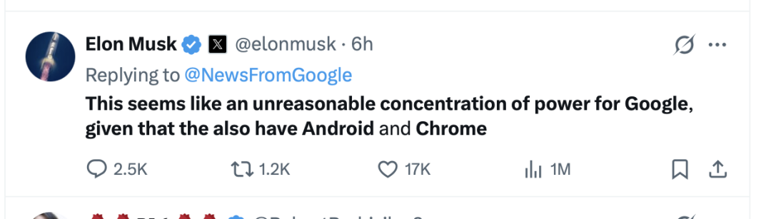 苹果和谷歌谈成一笔大生意,马斯克发文:强烈不满!