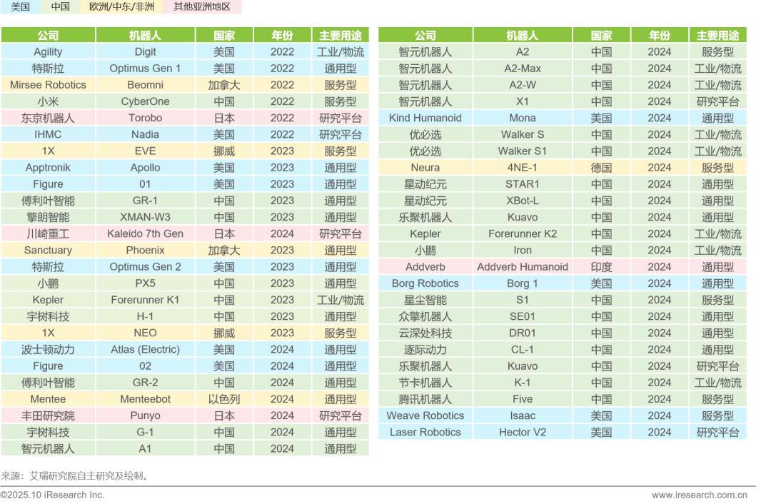 (下图是自2022年以来主要人形机器人发布情况,图片来自艾瑞咨询官方微信。)