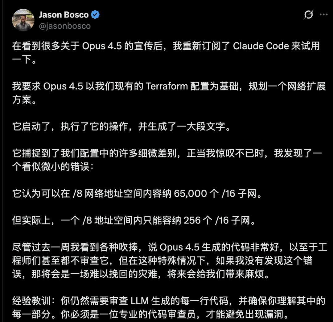 还有人提醒大家也不要百分百信任AI干活了,代码仍然需要人工来审查。
