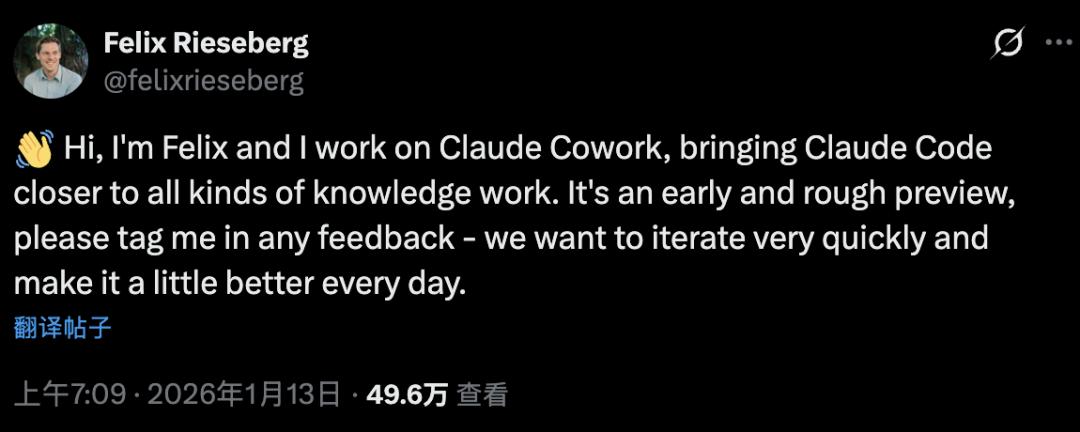 负责开发Claude Cowork的Felix Rieseberg继续分享更多故事。