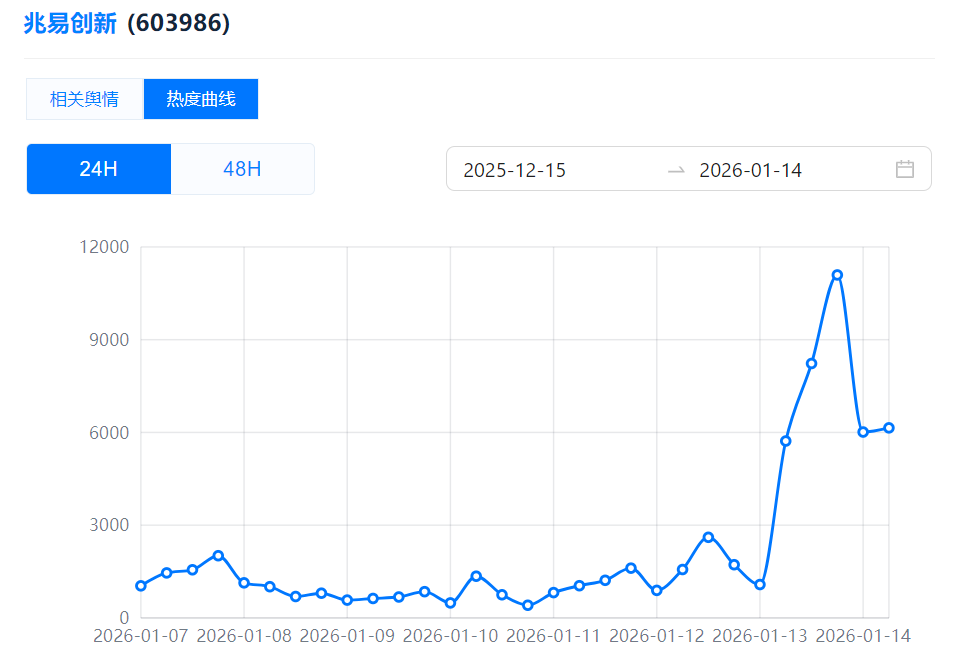 2、【上市企业热度观测日志】1月14日:兆易创新热度蝉联,佰维存储与闻泰科技携重磅事件跻身三甲