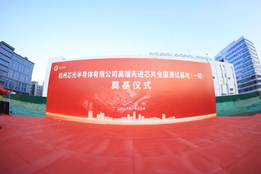 1月13日上午,杭州芯光半导体有限公司高端先进芯片全国测试基地(一期)奠基仪式于杭州滨富特别合作区举行。