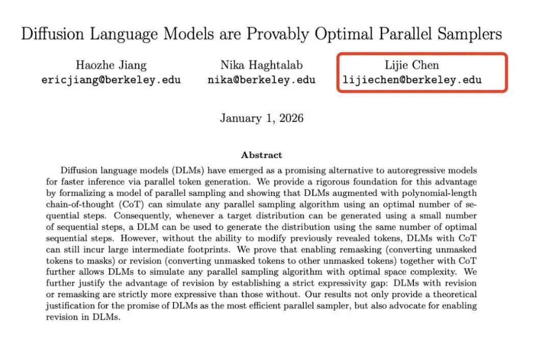 与此同时,陈立杰近期参与的最新研究方向也十分“当下”,聚焦于扩散语言模型(Diffusion Language Models),紧跟当前生成模型的重要演进路线。