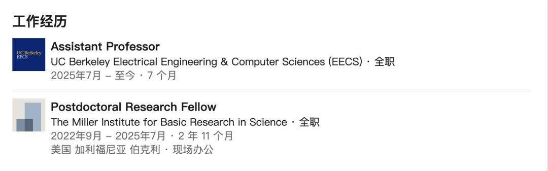 2022 年,陈立杰从MIT获得博士学位,随后加入UC Berkeley Miller研究所,担任Miller Postdoctoral Fellow(米勒博士后研究员)。