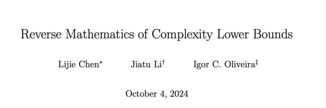 2024年,陈立杰一篇名为《复杂性下界的逆向数学》更是给困扰学界近 50 年的一类计算复杂性难题带来新思路。