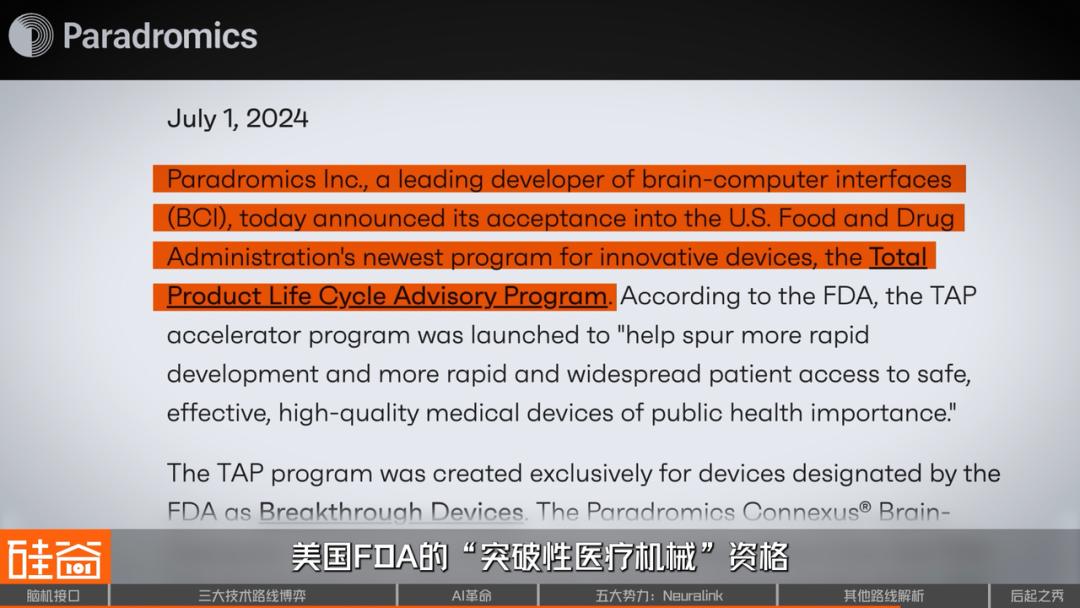 Paradromics已获得美国FDA的“突破性医疗器械”资格,并被纳入TAP加速计划,这个计划是为创新医疗设备开辟的“快车道”。资金方面,公司在2023年完成了3300万美元A轮融资,总融资规模接近1亿美元。