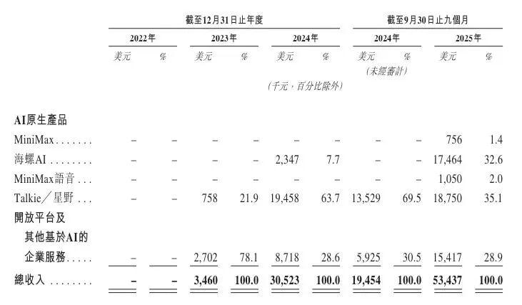 这一推断,如今也在其招股书上得到验证。Talkie和星野在2024年占其总收入的60%左右,2025年因为海螺AI商业化成效显著提升而占比降低,但收入能力依旧强劲。