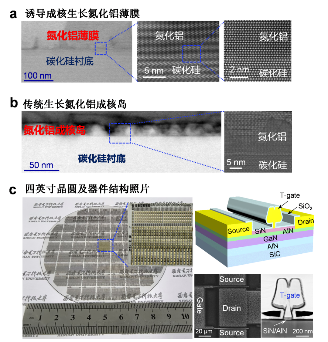 团队的突破,在于从根本上改变了氮化铝层的生长模式。他们创新性地开发出“离子注入诱导成核”技术,将原来随机、不均匀的生长过程,转变为精准、可控的均匀生长。“就像把随机播种变为按规划均匀播种,最终长出了整齐划一的庄稼。”周弘如此形容。这项工艺使氮化铝层从粗糙的“多晶岛状”结构,转变为原子排列高度规整的“单晶薄膜”。
