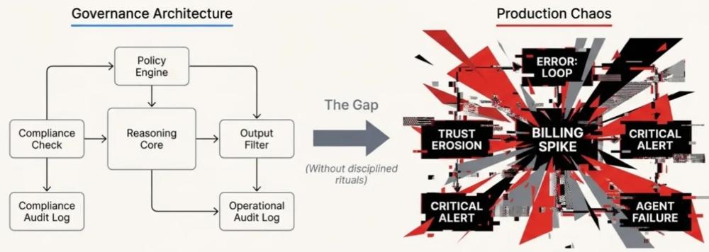想象一下:你花了几个月的时间完善你的治理引擎——最小权限原则、全面的审计跟踪,以及对任何高风险操作都必须经过人工审批。它顺利通过了所有审查。然而,周一早上9点,你的客服人员突然开始胡乱回复,把简单的工单变成代价高昂的推理循环,这不仅损害了用户信任,还导致账单飙升。