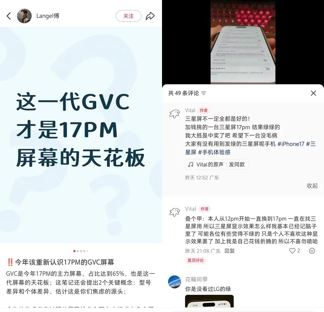 别说三星屏了,连苹果用户嫌弃、坑惨小米的 LG 屏,在苹果的妙手回春下,整体的显示效果,都不会比三星的差 5%;甚至在小红书上,有人觉得 LG 的屏幕才是版本答案。