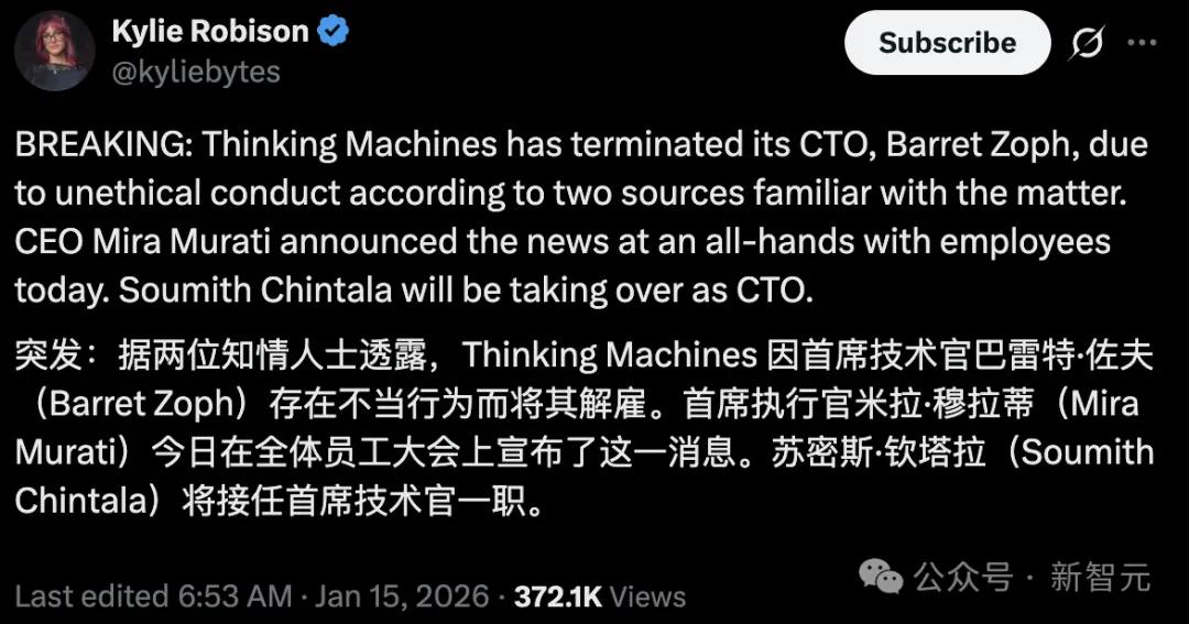 【导读】硅谷版「无间道」来了!Thinking Machines Lab掌门人Mira Murati刚刚开除被指「向竞争对手泄密」的CTO Barret Zoph,OpenAI几乎同一时间发文接人:欢迎Zoph与另外两名TML核心骨干重返OpenAI!一幕幕「挖角」与「反挖角」游戏在硅谷循环上演。
