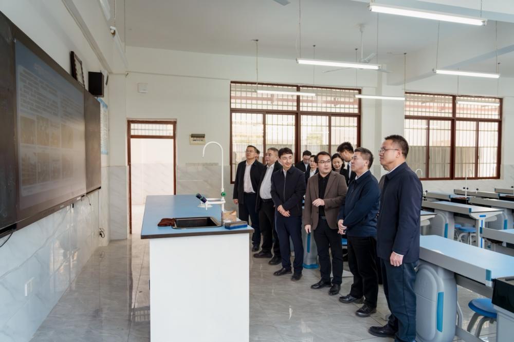 随后,刘桂清一行前往田林县新高中,了解新高中学生规模、硬件设施、教学理念、高考成绩等,询问中国电信智慧校园项目的实施情况。他强调,要充分发挥中国电信行业优势,积极运用AI天翼云眼应用等技术手段,进一步关注学生心理健康,在援建基础设施的基础上,推进国内优质教育资源的结对帮扶,进一步提高教育教学管理的智能化和现代化水平。