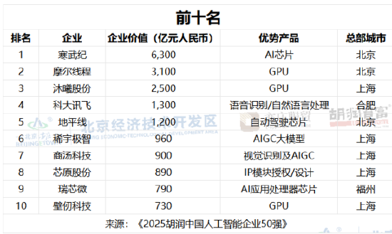 2025中国AI企业50强:寒武纪位居榜首,芯片企业包揽前三