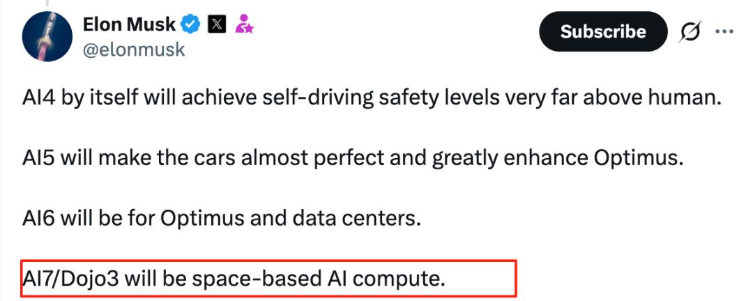 另一方面,则是因为用途变了,Dojo3现在也叫AI7,将用于太空计算
