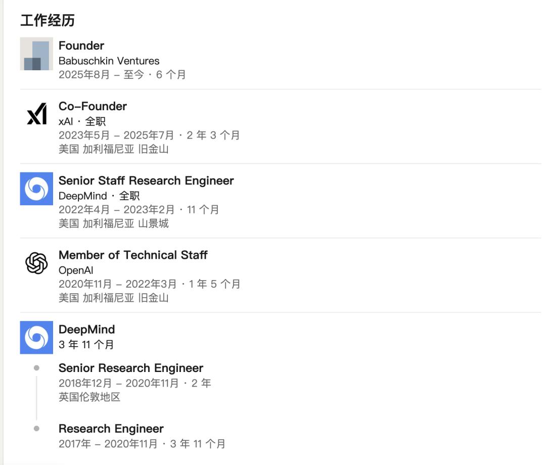 这是继Igor Babuschkin(25年8月)、Christian Szegedy(25年2月)、Kyle Kosic(24年4月)等大佬离职后,又一位离开的xAI联创。