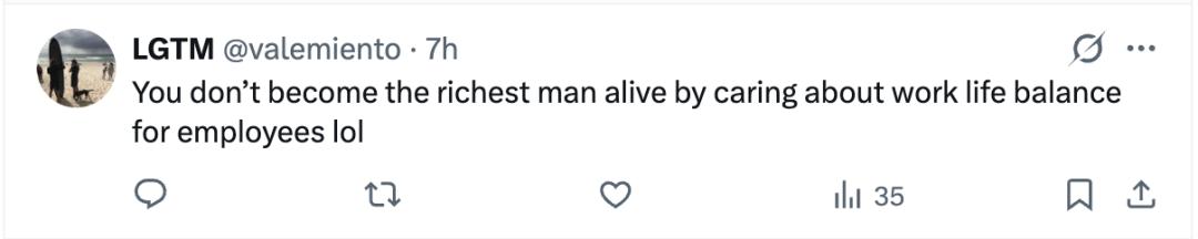 之所以能成为世界首富,靠的可不是关心员工的工作与生活平衡,哈哈。