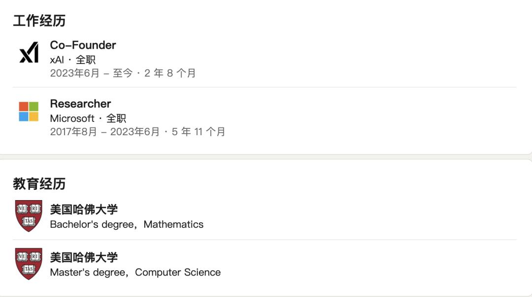在2023年加入xAI成为联合创始人之前,杨格曾在微软工作近6年,担任研究员。