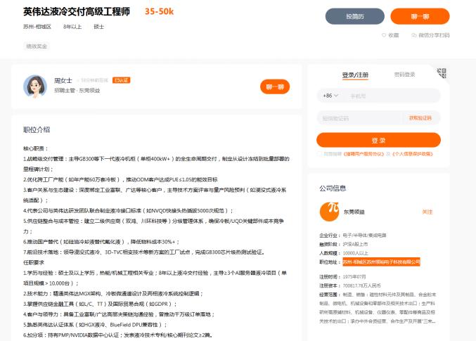 2025年8月,猎聘网曾显示,领益智造正在招聘英伟达液冷交付高级工程师,需“精通英伟达MGX架构”及“熟悉英伟达认证体系”,不过之后这则招聘信息便下架。
